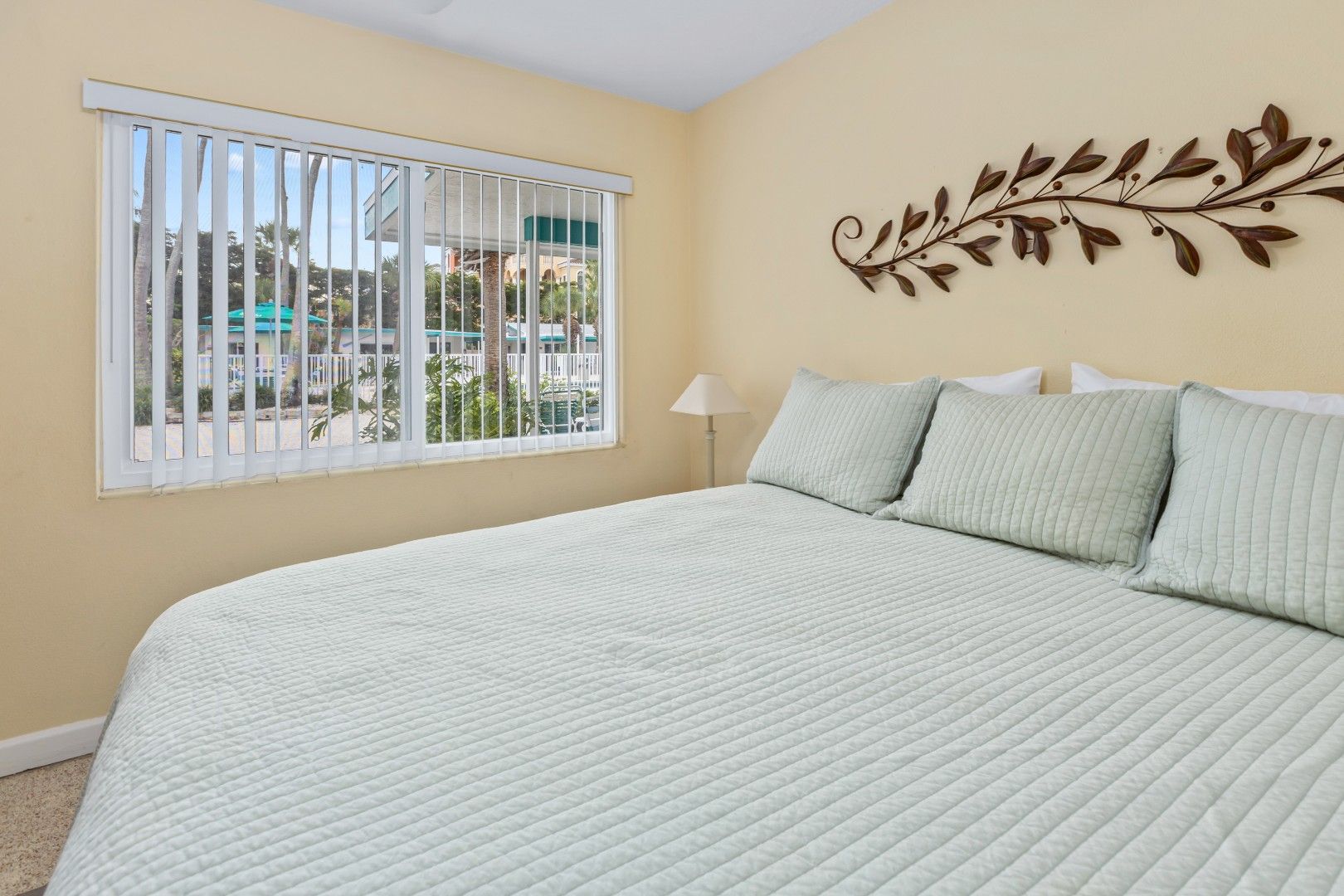 - Front patio with pool & gulf view, table, umbrella & chairs, Rear patio with chairs