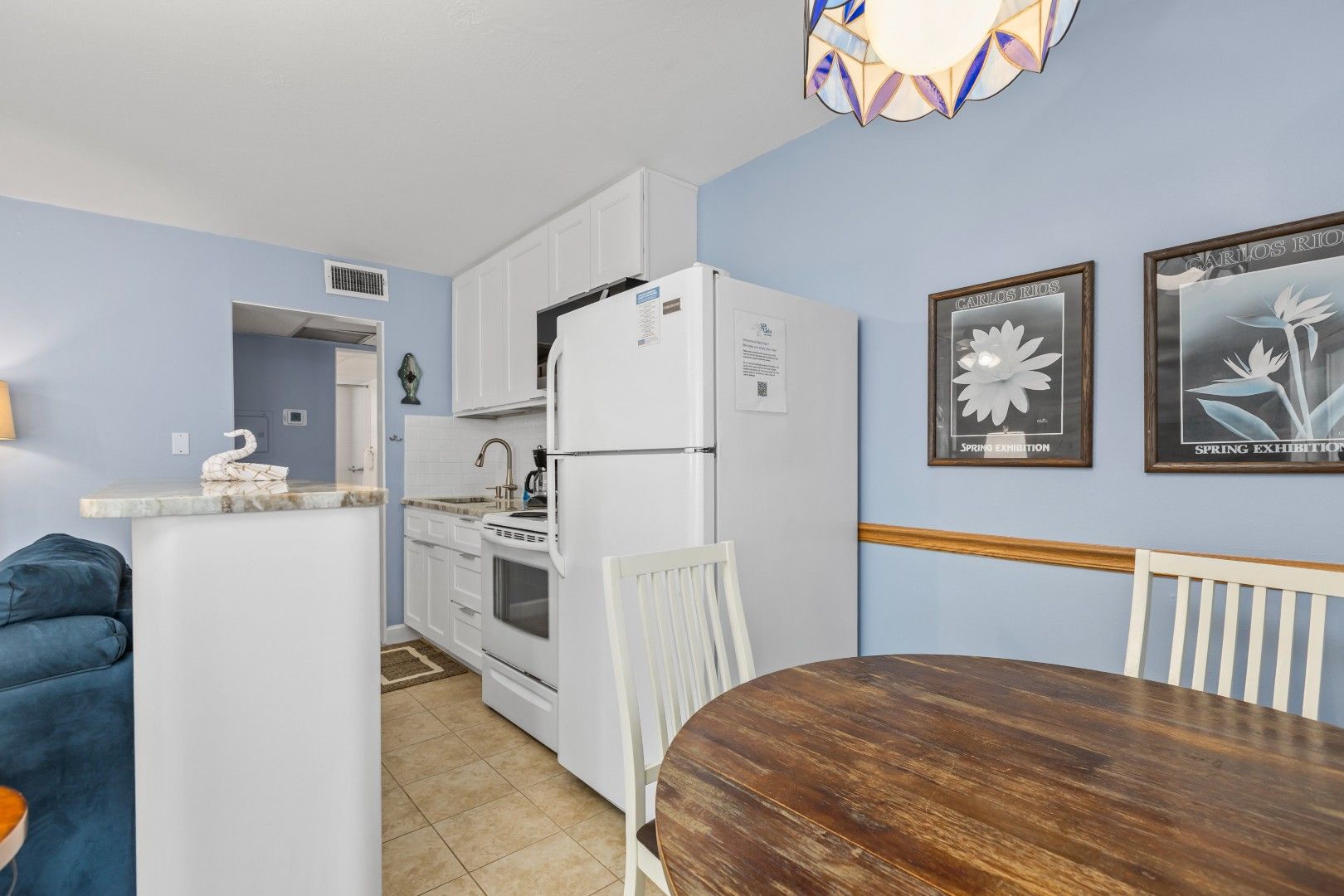 - Kitchen with Fridge, Stove, Microwave & Standard Mr. Coffee Maker