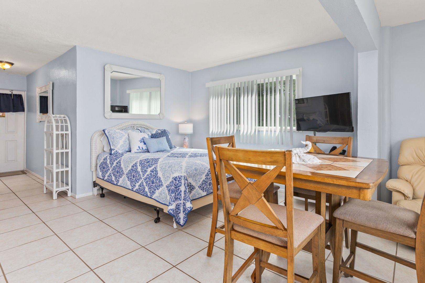 Studio: One open room with bedroom area that has a Queen bed.