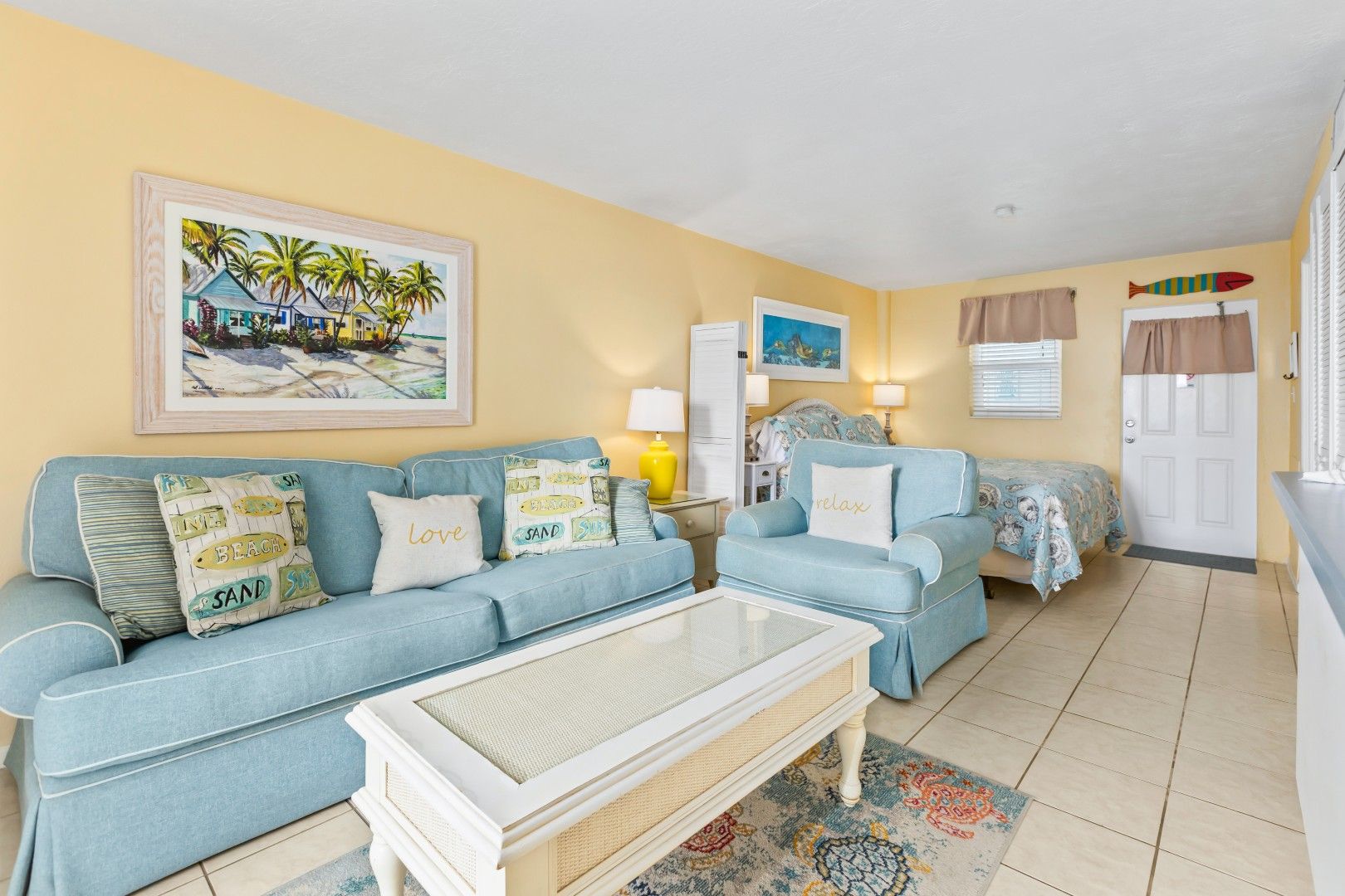 - Livingroom area with sofa sleeper & Smart TV, Cable & Internet. Dining nook and fully equipped kitchen
